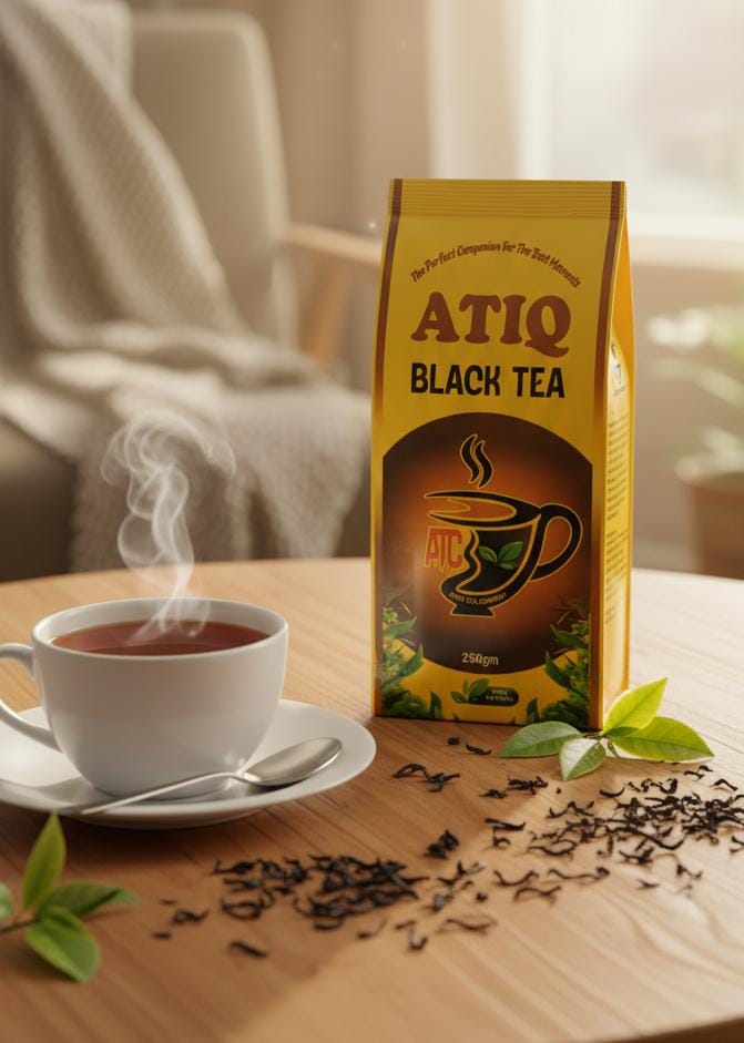 Atiq Black Tea – 250gm is a premium-quality black tea offered by Atiq Tea Company. Packaged in a convenient 250 gram pouch, this tea delivers a rich and robust flavor, ideal for daily brewing. It’s carefully crafted for freshness and aroma, giving you a balanced cup with deep color and a full-bodied taste. Perfect as a morning pick-me-up or as a soothing evening brew, it’s a versatile choice for black tea lovers.