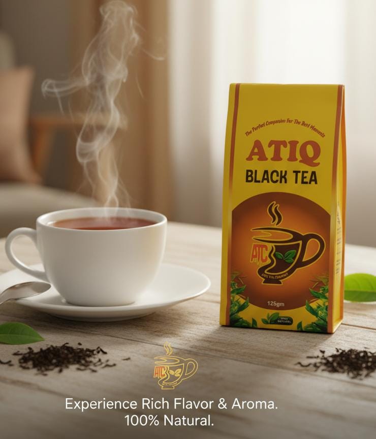 Ateeq Black Tea – 125gm is the compact version of Atiq Tea Company’s signature black tea, designed for convenience and freshness. Despite its smaller size, it preserves the same rich, full-bodied flavor and aroma that defines the brand – delivering a smooth, deep brew with a strong color and satisfying strength. Ideal for those who want to enjoy premium black tea in moderate quantities, it’s also great for trying out the flavor without committing to a larger pack.